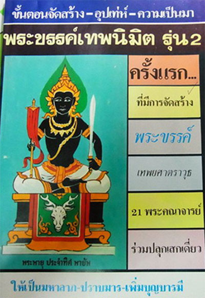 พระขรรค์เทพนิมิตสร้างจากโลหะเบญจฤทธิ์ผสมทองเหลืองใช้ได้ครอบจักรวาล ใช้บรรดาลโชคลาภ ทำน้ำมนต์แก้ถอนอาถรรพ์ไล่ภูติผีปิศาจอีกทั้งยังเป็นเมตตามหานิยมและแคล้วคลาดปลอดภัย