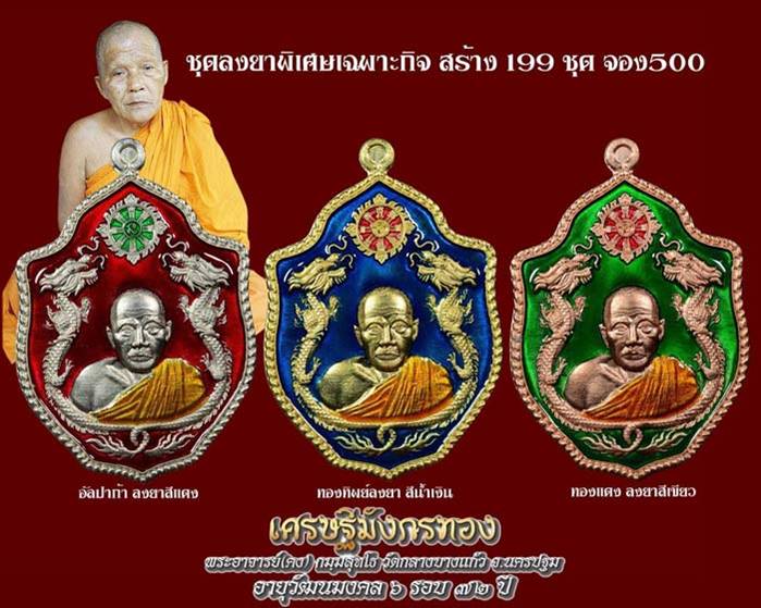 เคาะเดียว ยกชุด 3เหรียญ เลข81 เหรียญมังกรคู่ (ยกชุด ชุดพิเศษลงยา จอง500) เศรษฐีมังกรทอง หลวงพ่อสัญญา (หลวงพ่อคง) วัดกลางบางแก้ว อำเภอนครชัยศรี จังหวัดนครปฐม |