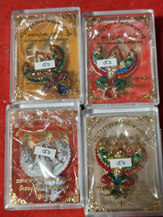 วัดใจ...เลข56 ชุดกรรมการ 4 องค์ (จอง600) (หลวงปู่แสนปลุกเสก) พญาครุฑขุมทรัพย์มหาเศรษฐี กฐิน ๖๑ พระอาจารย์ประสาน วัดช่องกลิ้ง ตำบลหนองนกแก้ว อำเภอเลาขวัญ จังหวัดกาญจนบุรี |