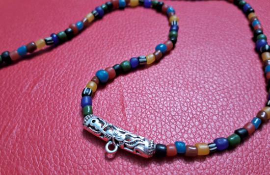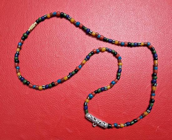 สร้อยคอลูกปัดทราวดี ลูกปัดโบราณสวยๆ ความยาว 24 นิ้ว สวมหัวได้หรือหมุนเกลียวทองเหลืองถอดออกก็ได้ สามารถห้อยพระได้ 1 องค์ (กท.06) |