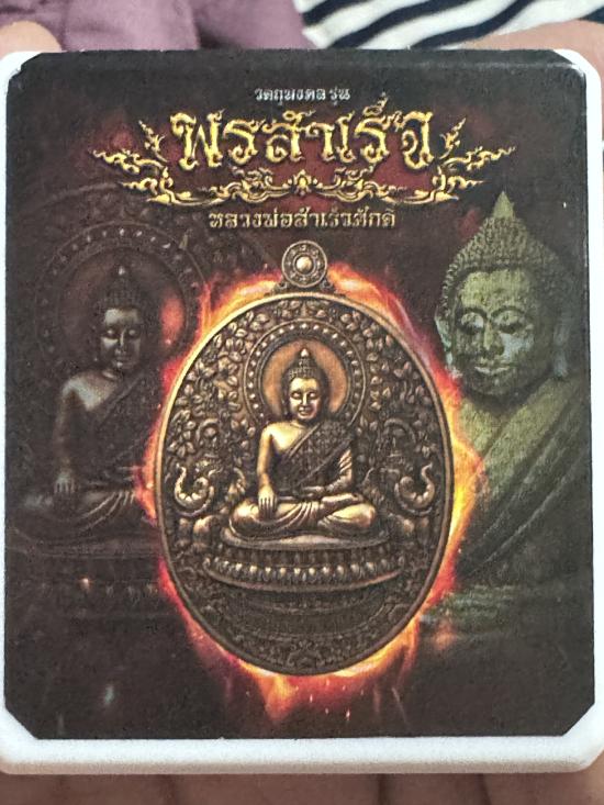 รูปหล่อ หลวงพ่อสำเร็จศักดิ์สิทธิ์ สระบุรี เนื้อนวะผิวรุ้ง จีวรทาทอง อุดมวลสาร หมายเลข 87 กล่องเดิม