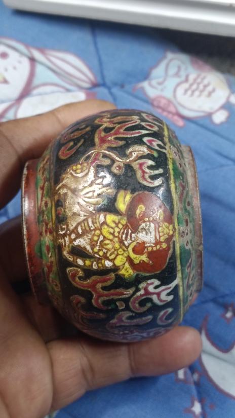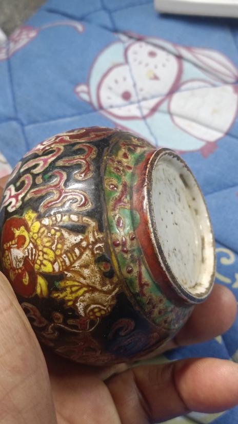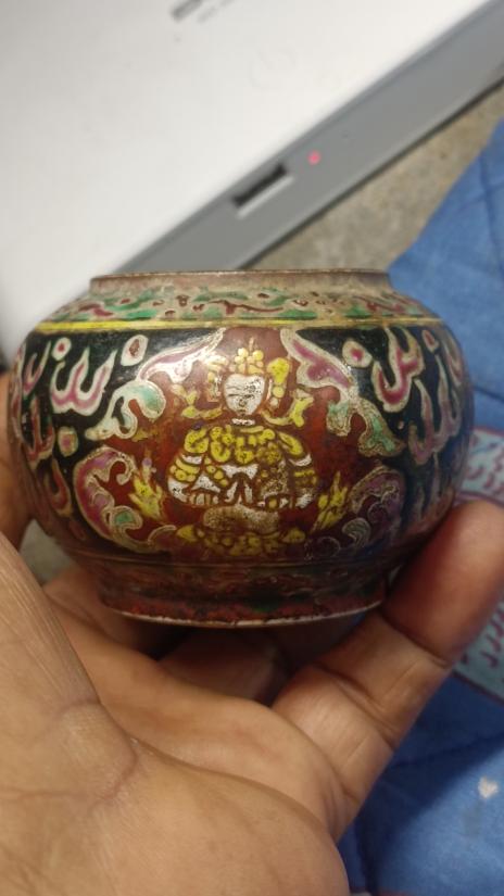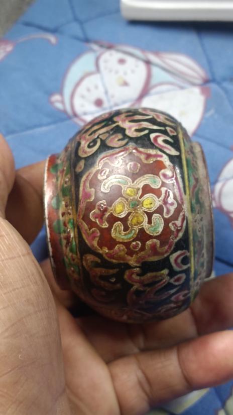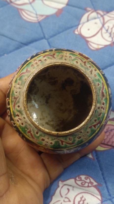 โถลายเบญจรงค์เก่า ขนาดกว้าง 8 ซ.ม สูง 5 ซ.ม