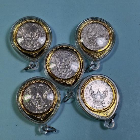 เหรียญ 1 บาท มหาบพิธ เหรียญครุฑปี 17 ผ่านใช้ จำนวน 5 เหรียญ ใส่ตลับอย่างดี