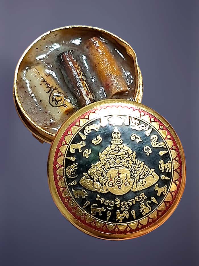 ตลับสีผึ้งพระราหู มหานิยมอุดมโชค จตุคามรามเทพ รุ่น มงคลจักรวาล ปี2549 ขนาด3.2ขม |