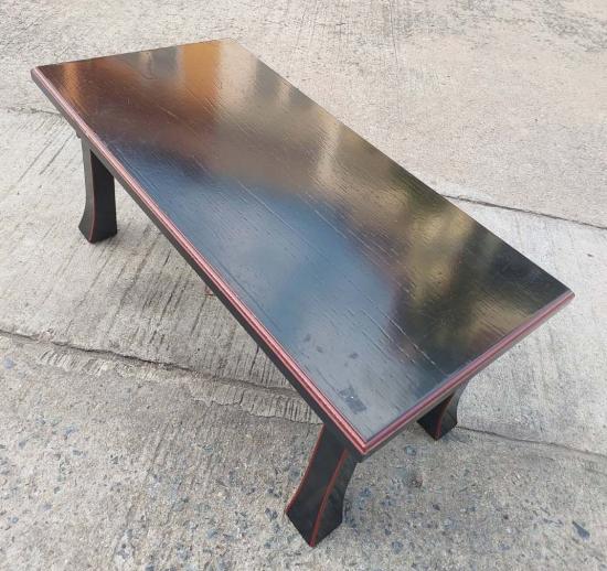 วัสดุและการตกแต่ง: ทำจากไม้และเคลือบด้วยแล็กเกอร์สีดำ โดยมีขอบและปลายขาเป็นสีแดง