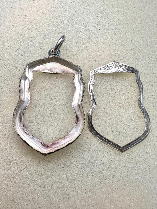 กรอบเงินแท้สวยๆ ทรงเสมา พร้อมใช้งาน น้ำหนัก 4.90 กรัม ขนาดวัดจากด้านในกรอบ มีรูปเพิ่มเติมด้านล่างค่ะ