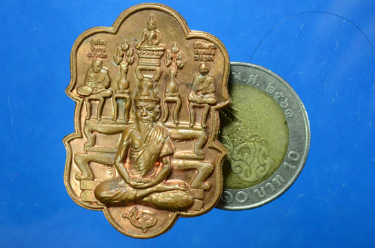 **100 ส่งด่วน*เหรียญไหว้ครู ปี2554 (ด้านหน้าบรมครูใหญ่ ด้านหลังยันต์มหามงคลพุทธคุณ) - หลวงพี่เลี้ยง วัดจอมเกษ จ.อยุธยา ตอกโค๊ต |