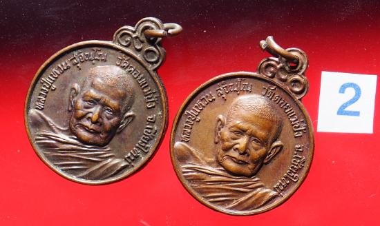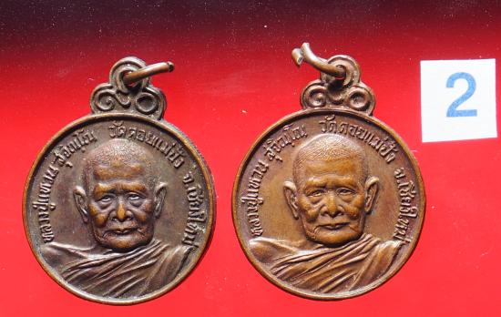 ( 2 ) เหรียญหลวงปู่แหวน สุจิณโณ วัดดอยแม่ปั๋ง ปี 2521 รุ่นร่มโพธิ์ เนื้อทองแดงน้ำตาล ( 2 เหรียญ ) |