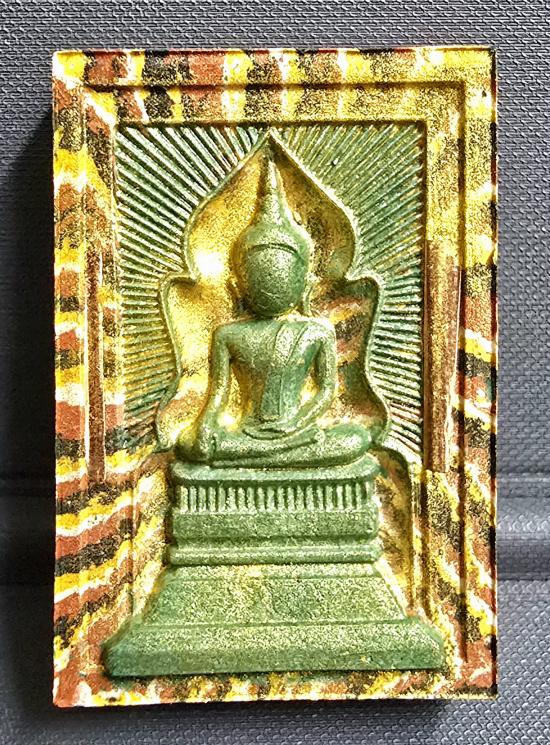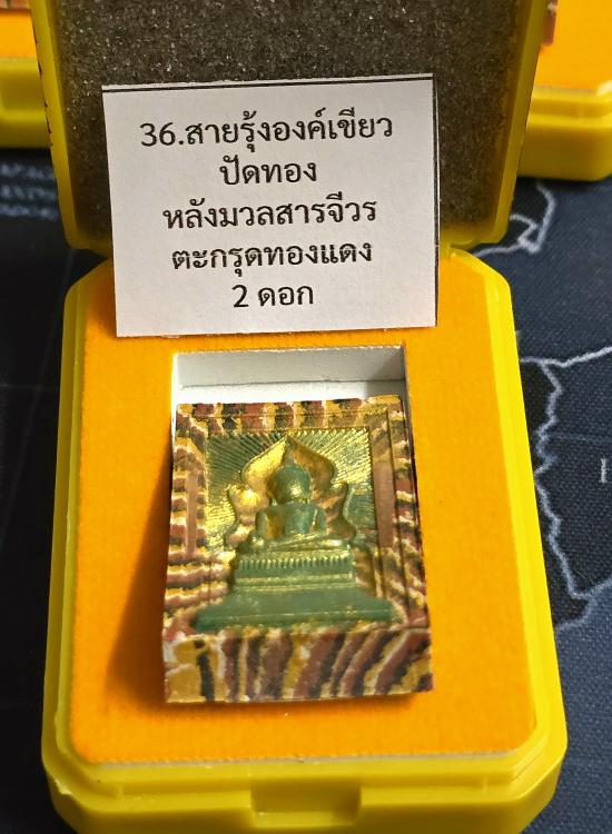 เนื้อสายรุ้งองค์เขียว ปัดทอง หลังมวลสาร,จีวร ตระกรุดทองแดง 2 ดอก พระปั้มคมชัด สวยมากๆๆครับ
