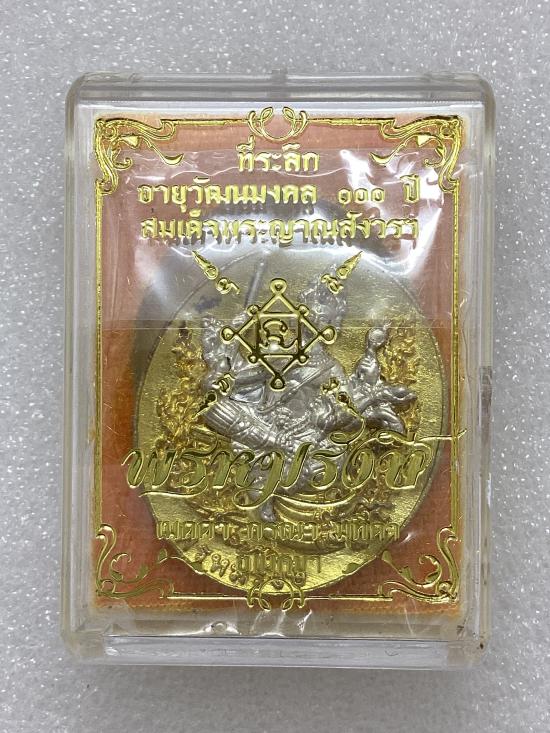 เหรียญหล่อท้าวมหาพรหม รุ่น"พรหมรังษี" ที่ระลึกอายุวัฒนมงคล ๑๐๐ ปี สมเด็จพระญาณสังวร ฯ วัดบวรนิเวศ เนื้อชนวนทองระฆัง หน้ากากเงิน กล่องเดิม |