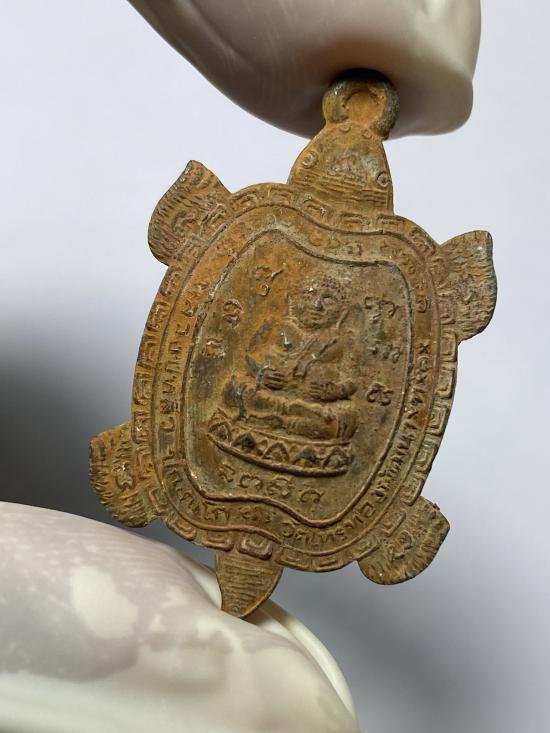 เหรียญพญาเต่าเรือน หลวงปู่หลิว รุ่นรวมพลัง มหาลาภ เนื้อตะกั่วสนิมแดง วัดไทรทองพัฒนา กาญจนบุรี ปี 2539 (หลวงปู่หลิวสร้าง และเคยจำพรรษาที่วัดนี้) |