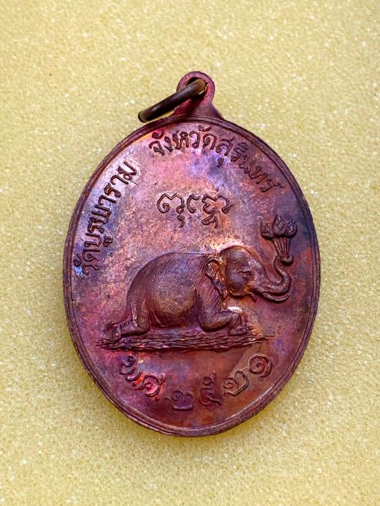 เหรียญหลวงปู่ดุลย์ วัดบูรพาราม จ.สุรินทร์ รุ่นช้างหมอบ ปี 2521 เนื้อทองเเดง