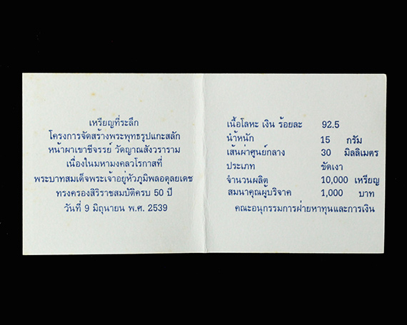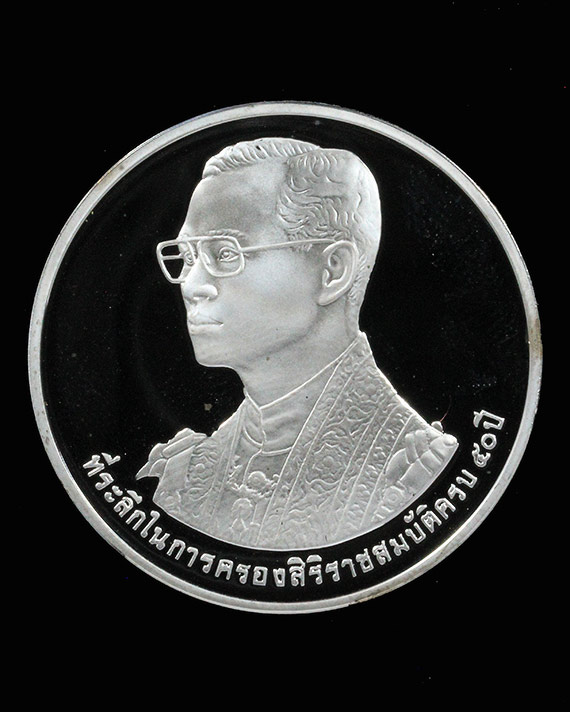 รายละเอียด เหรียญรัชกาลที่ 9 เนื้อเงินขัดเงาครับ ขนาดใหญ่ที่ระลืกในการครองสิริราชสมบัติ50ปี
