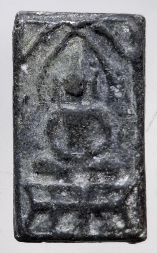 เนื้อชินตะกั่ว หลังยันต์ ไม่ทราบที่ ขนาดเท่าเหรียญบาท |