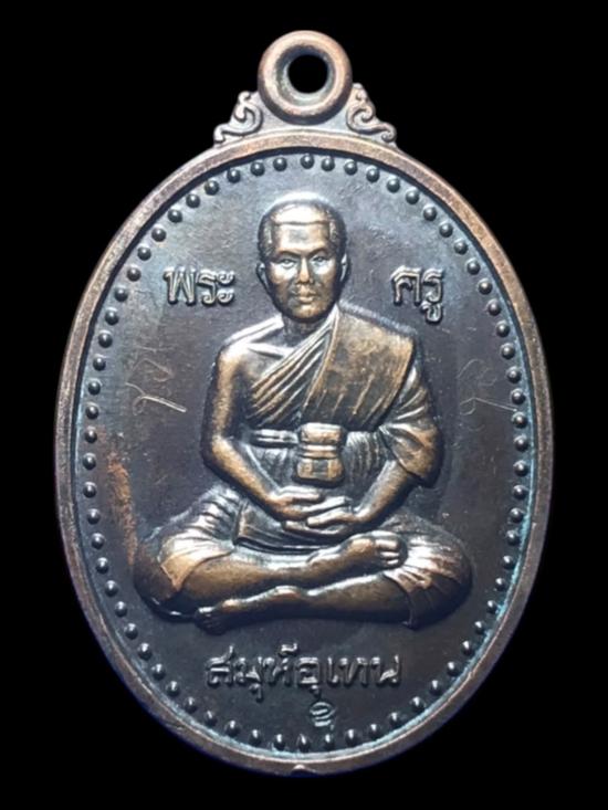 เหรียญรุ่นแรก พระครูสมุห์ อุเทน วัดท่าไม้ สมุทรสาคร พ.ศ2548 เนื้อทองแดงรมดำ #เหรียญมีรอยจาร |