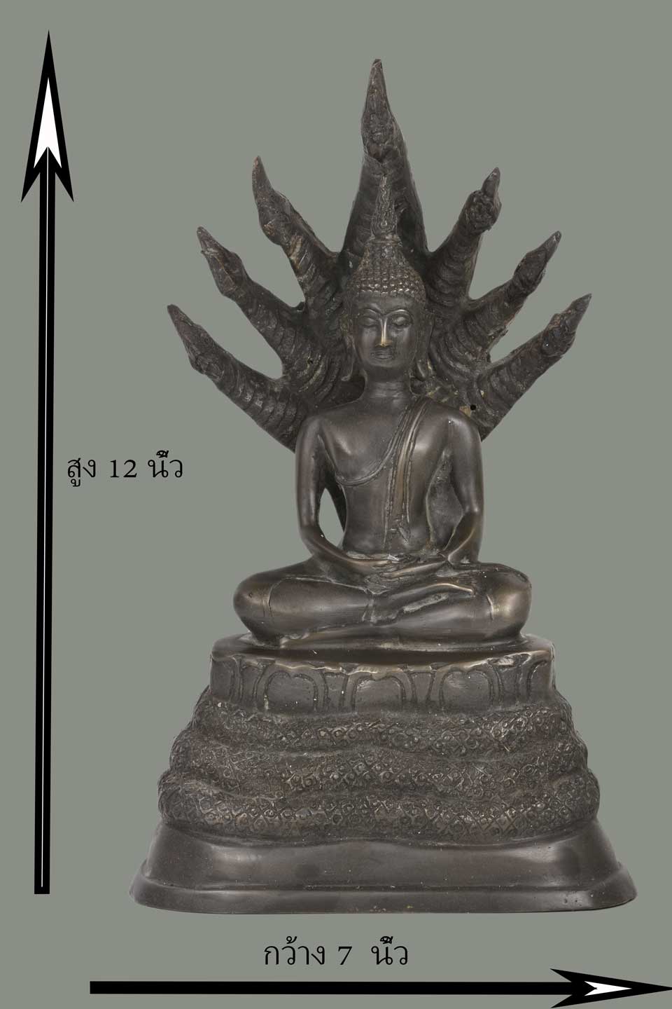 เคาะแดง พระบูชาพระนาคปรก 7 เศียร เนื้อโลหะทองเหลืองเก่า หน้าตัก 4 นิ้ว ฐานกว้าง 7 นิ้ว ความสูง 12 นิ้ว สภาพสวยสมบูรณ์ เหมาะสำหรับขึ้นหิ้งบูชาเพื่อเป็นสิริมงคลแก่บ้านเรือน |