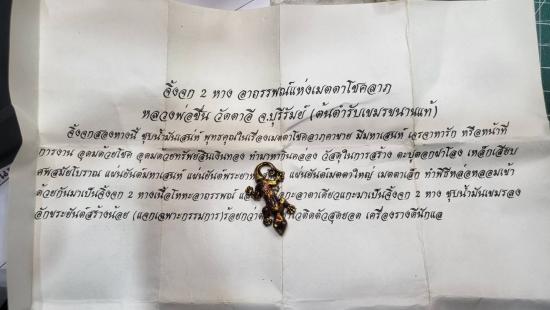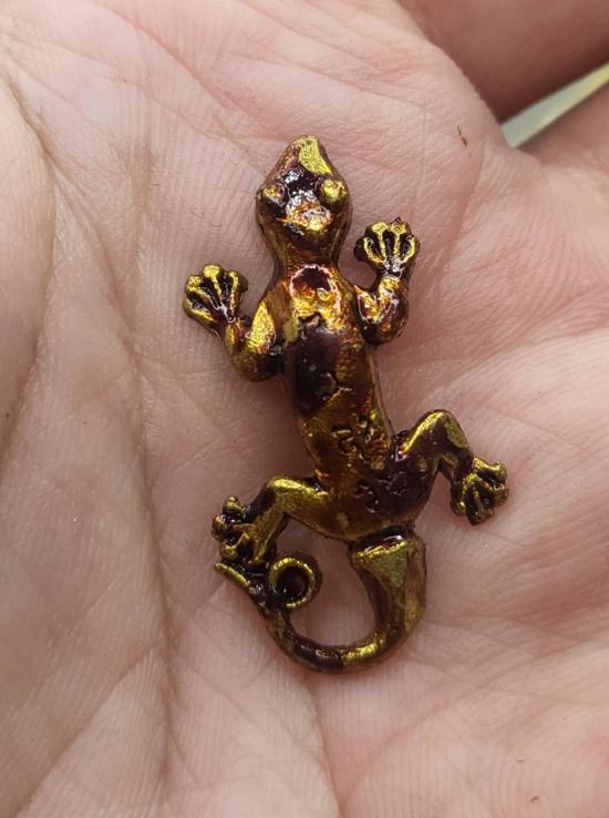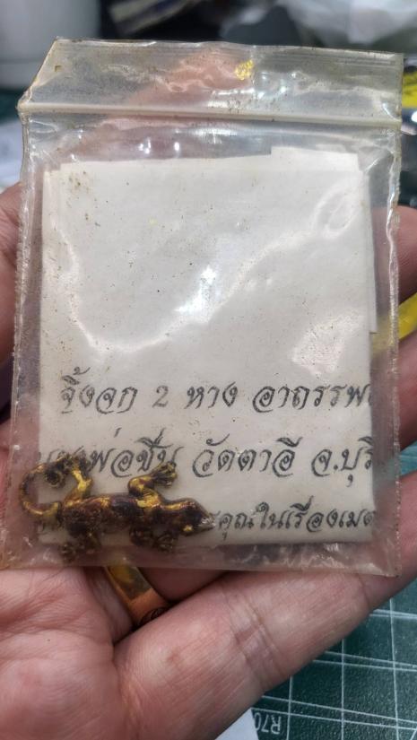 พุทธคุณจิ้งจก 2 หางมหาลาภ ชุบน้ำมันเสน่ห์ หลวงปู่ชื่น ปี 2545 |
