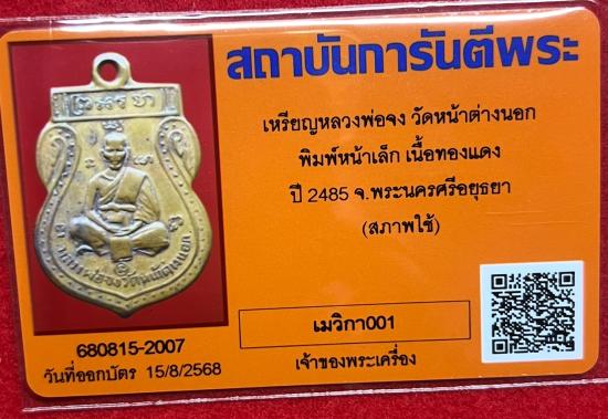 เคาะแรกแดง เหรียญหลวงพ่อจง วัดหน้าต่างนอก พิมพ์หน้าเล็ก เนื้อทองแดง ปี 2485 จังหวัดพระนครศรีอยุธยา |