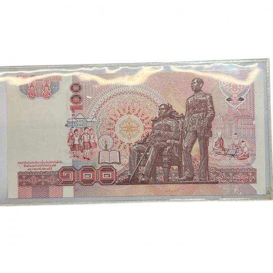 ธนบัตรไทยชนิดราคา 100 บาท แบบ 14 ในรัชสมัยรัชกาลที่ 9 เลข 4ข0123450 ไม่ผ่านใช้ |
