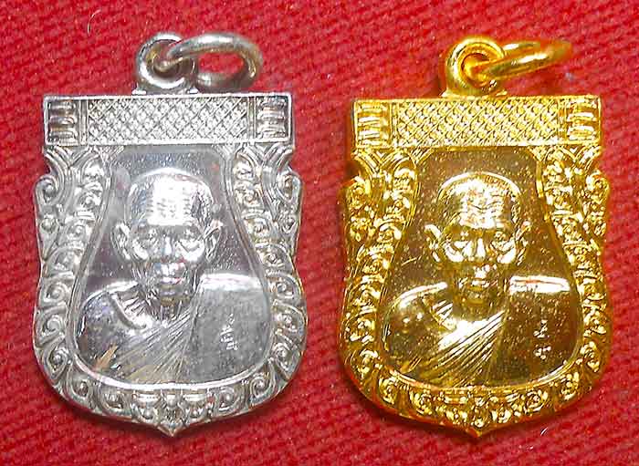 2 องค์***หลวงปู่เช้า วัดห้วยลำไย ต.หนองพิกุล อ.ตากฟ้า จ.นครสวรรค์ เนื้อกะไหล่เงิน + เนื้อกะไหล่ทอง+ เหรียญเสมาเล็ก รุ่นแรก ปี 2555 |