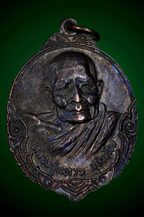 เหรียญหลวงปู่แหวน วัดดอยแม่ปั๋ง รุ่น "ถิ่นกำเนิด" ปี 2532 บล็อกหูขีด-หัวขีด (ตอกโค๊ต) เนื้อทองแดงรมดำ จังหวัดเชียงใหม่ |