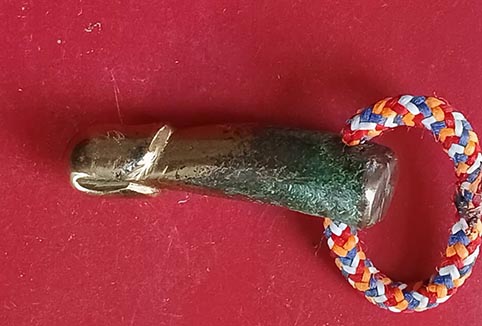 ปลัดขิก เนื้อสัมฤทธิ์ขอมโบราณ รอยจาร ขนาด 1.2นิ้ว หลวงปู่กาหลง เขี้ยวแก้ว วัดเขาแหลม |