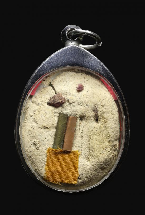 หลังอุดผง + เกศา + พลอย + ตะกรุด + ผ้าจีวร