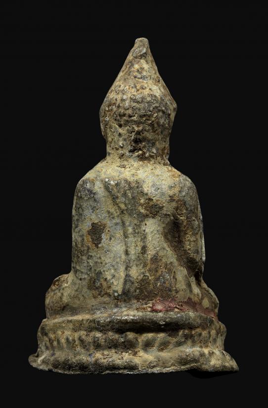 องค์นี้ค่อนข้างใหญ่สูงเกือบ 3 นิ้ว หน้าตัก 1 นิ้ว ผิว ออกสนิมไขปนแดง