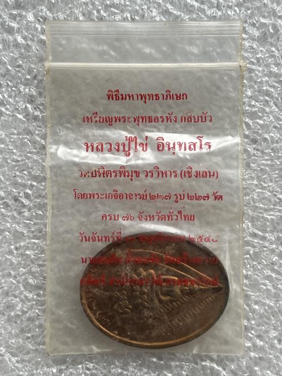 เหรียญพระพุทธอรหัง กลีบบัว หลวงปู่ไข่ วัดเชิงเลน บล๊อกกองกษา ปณ์ ปี 2545 ซองเดิม