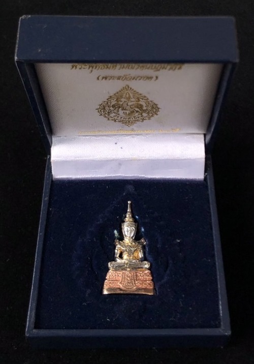 พระแก้วมรกต กรมสรรพสามิต ( เนื้อเงินสามกษัตริย์ ) ตอกโค๊ต+หมายเลข 17419 ปี 2539 สภาพสวย มาพร้อมกล่องเดิมครับ