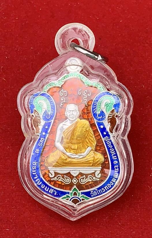 เหรียญเสมา รุ่นแรก หลวงพ่อเพชร วัดไทรทอง จ.กาญจนบุรี เนื้อเงินลงยา