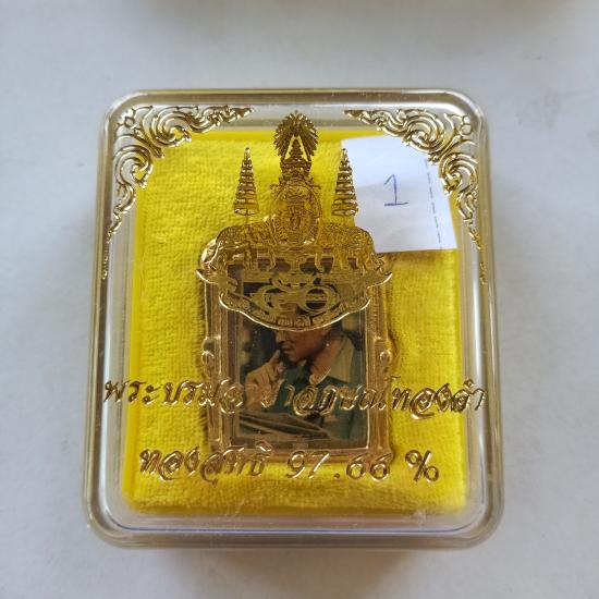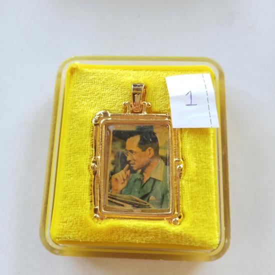 ล็อกเก็ต(พระบรมฉายาลักษณ์ทองคำ) ในหลวง รัชการที่ 9 ((พิมพ์เลเซอร์บนแผ่นทองคำ 97.66%) หุ้มกรอบชุบทองไมครอน