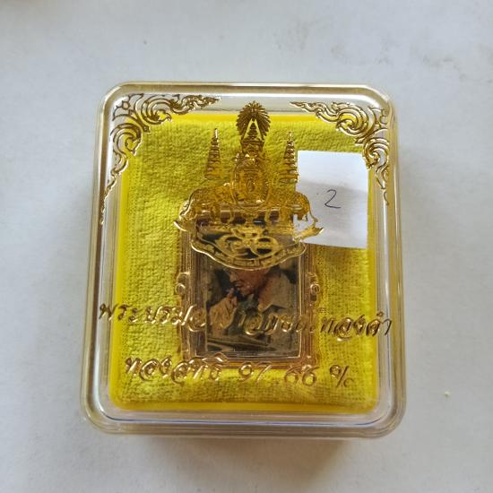ล็อกเก็ต(พระบรมฉายาลักษณ์ทองคำ) ในหลวง รัชการที่ 9 ((พิมพ์เลเซอร์บนแผ่นทองคำ 97.66%) หุ้มกรอบชุบทองไมครอน