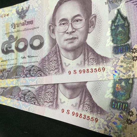 2 ฉบับ แบงค์ 500 พระราชินี ร9 หมวด9S- 99หน้า -9หลัง เลขมงคลทั้ง 2 ฉบับ |