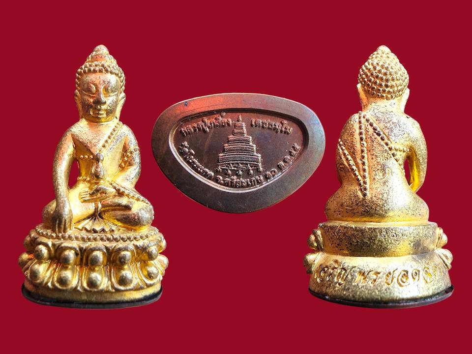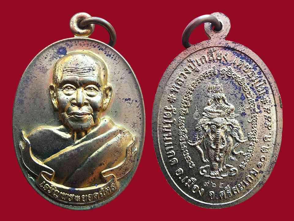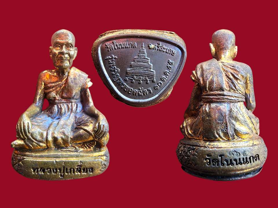 เคาะแรกแดง ชุดเจริญพรยอดฉัตร หลวงปู่เกลี้ยง วัดโนนแกด รุ่นเจริญพร - ยอดฉัตร พระกริ่ง+เหรียญ+รูปเหมือน+เม็ดพระธาตุ ชุดกรรมการ "หมายเลข 965" เนื้อทองชนวนก้นนวะโลหะ จำนวนสร้าง ๑๙๙๙ ชุด