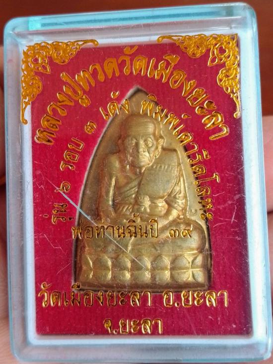 หลวงปู่ทวด รุ่น 6 รอบ 3 เด้ง พิมพ์เตารีดโลหะ พ่อท่านฉิ้น ปี 39 วัดเมืองยะลา พร้อมกล่องเดิม |