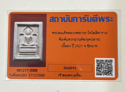พระสมเด็จแหวกม่านหลวงพ่อกวย ปี 2521 เนื้อผง พิมพ์ต้อ วัดโฆสิตาราม จ.ชัยนาท ออกบัตรแล้วเรียบร้อย(1)