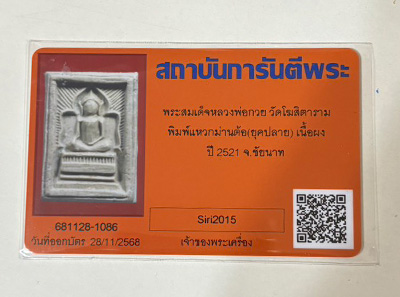 พระสมเด็จแหวกม่านหลวงพ่อกวย ปี 2521 เนื้อผง พิมพ์ต้อ วัดโฆสิตาราม จ.ชัยนาท ออกบัตรแล้วเรียบร้อย(2)
