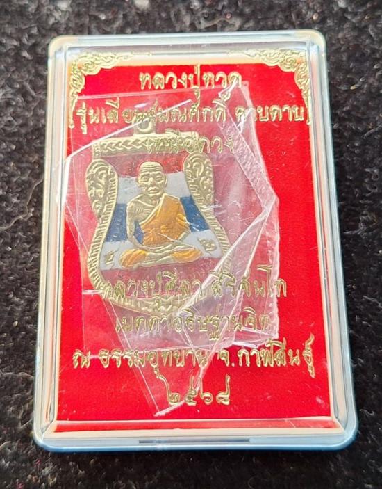 วัดใจ หลวงปู่ทวด หลวงปู่ศิลา เมตตาอธิษฐานจิต รุ่นเลื่อนสมณศักดิ์ เหนือดวง เนื้อทองทิพย์ ลงยาลายธงชาติ No.434 |