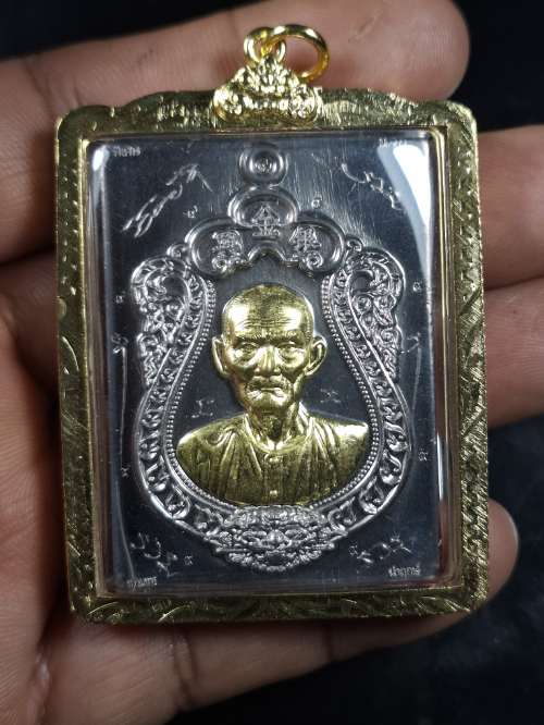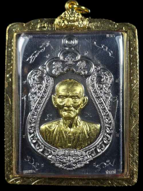 เซียนแปะโรงสี รุ่น เจ้าสัว ทองพันล้าน หลวงพ่อทอง สุทธสีโล วัดบ้านไร่ เนื้อตะกั่วนำฤกษ์ หน้ากากทองระฆังไม่ตัดปีกตอก9รอบ มีจารหน้าหลัง |