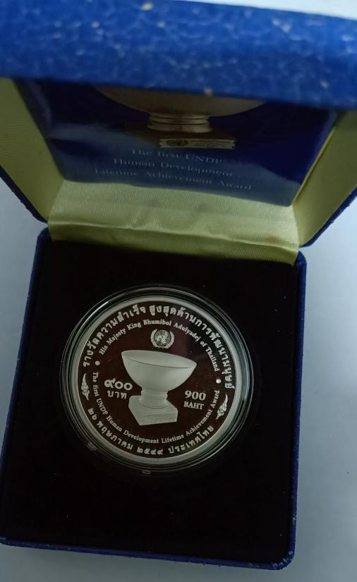 เหรียญ 900 บาท เนื้อเงินขัดเงา รางวัลความสำเร็จสูงสุดด้านการพัฒนามนุษย์ ปี2549 สภาพสวยพร้อมกล่องใบครับ