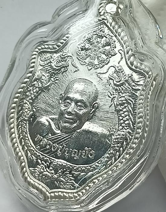 เหรียญมังกรคู่ มหาสมปรารถนา หลวงปู่บุญยัง วัดหนองโค เนื้อเงิน (ตอกนำฤกษ์) เบอร์ 36 พร้อมเลี่ยมรักษาผิวครับ (เหรียญหนักรวม 21.59 กรัม) |