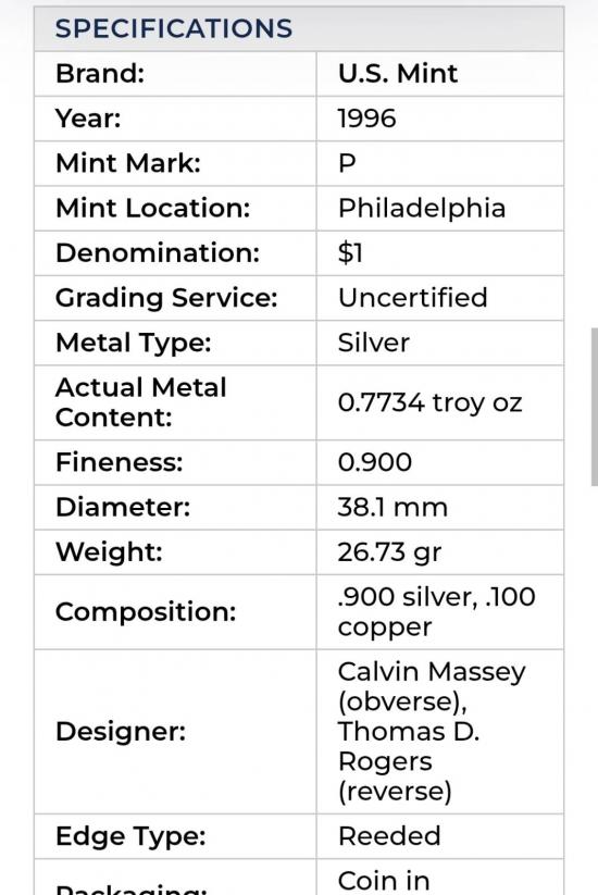 เหรียญเงิน ต่างประเทศ ONE DOLLAR น้ำหนัก 26 กรัม |