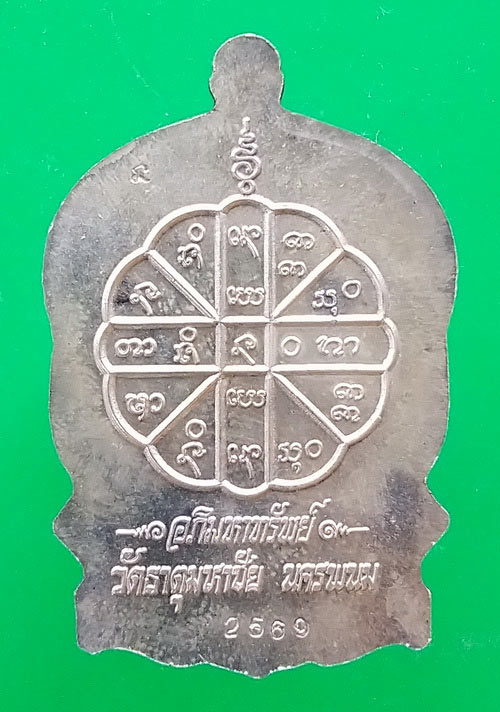หลวงปู่คำพันธ์ โฆสปัญโญ รุ่นอภิมหาทรัพย์ เนื้อเงิน หมายเลข 2569 + กล่อง