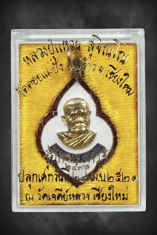 กะไหล่ทองลงยา สภาพสวยสมบูรณ์ ตอกโค๊ดชัดเจน มาพร้อมกล่องเดิมจากวัด จำนวนการสร้างน้อยหายาก เป็นรุ่นที่ออกแบบเหรียญที่สวยงาม น่าเก็บสะสมอีกรุ่นค่ะ