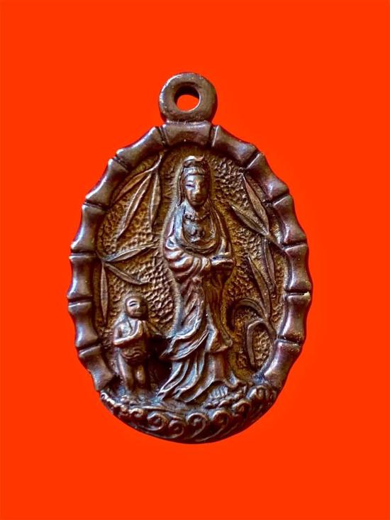 เหรียญพระโพธิสัตว์เจ้าแม่กวนอิม ออกโดยวัดซับไม้แดง จังหวัดเพชรบูรณ์ ปี 2518 ((เนื้อนวะ))หลวงปู่โต๊ะปลุกเสก