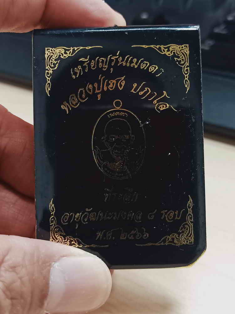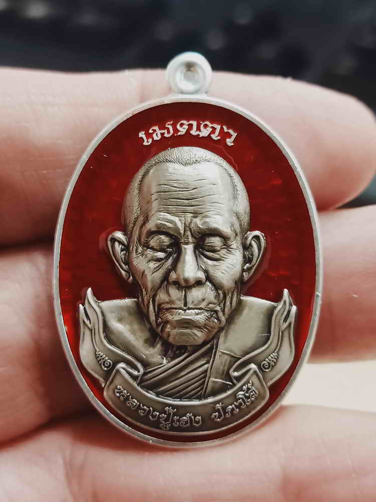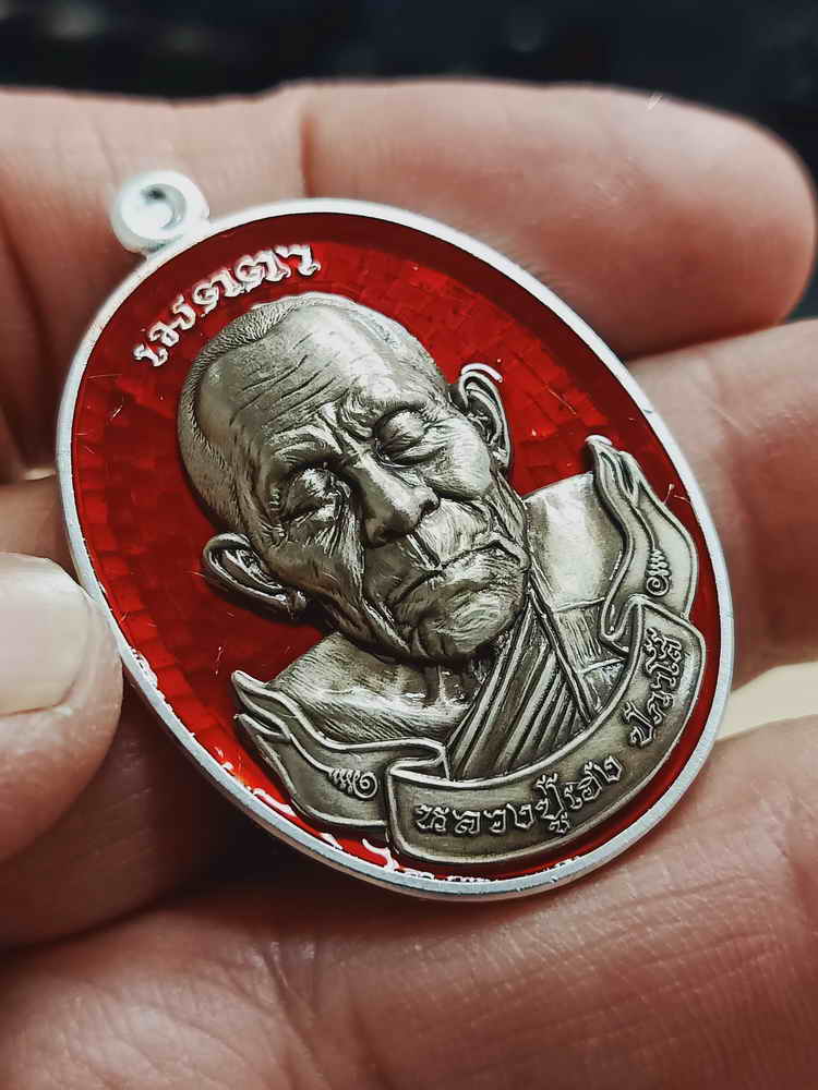 วัดใจ 100 เหรียญเมตตา หลวงปู่เฮง ปภาโส วัดบ้านด่านช่องจอม สุรินทร์ 2566 ชุบเงิน หน้ากากศาติน ลงยาแดง หมายเลข 32 กล่องเดิม |