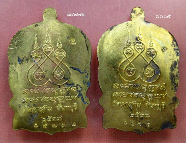เหรียญนั่งพาน เนื้อทองเหลือง หลวงพ่อสมชาย วัดเขาสุกิม ตอกโค้ด ส และโค้ด จำนวน 2 เหรียญ หมายเลข ๑๔๗๗๒ และ ๖๖๐๕ ได้มาจากคนในพื้นที่