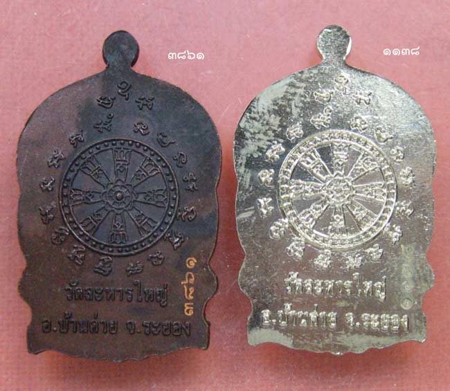เหรียญนั่งพาน หลวงพ่อสิน วัดละหารใหญ่ ปี ๒๕๕๔ เนื้อทองแดงรมดำ หมายเลข ๓๘๖๑ เนื้ออัลปาก้า หมายเลข ๑๑๓๘ พระเก่าปีลึก สวยๆพร้อมกล่องเดิมๆจากวัด