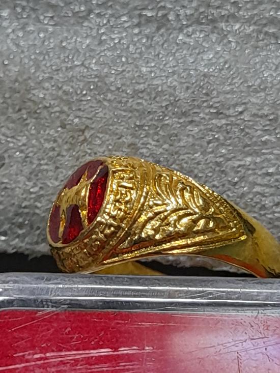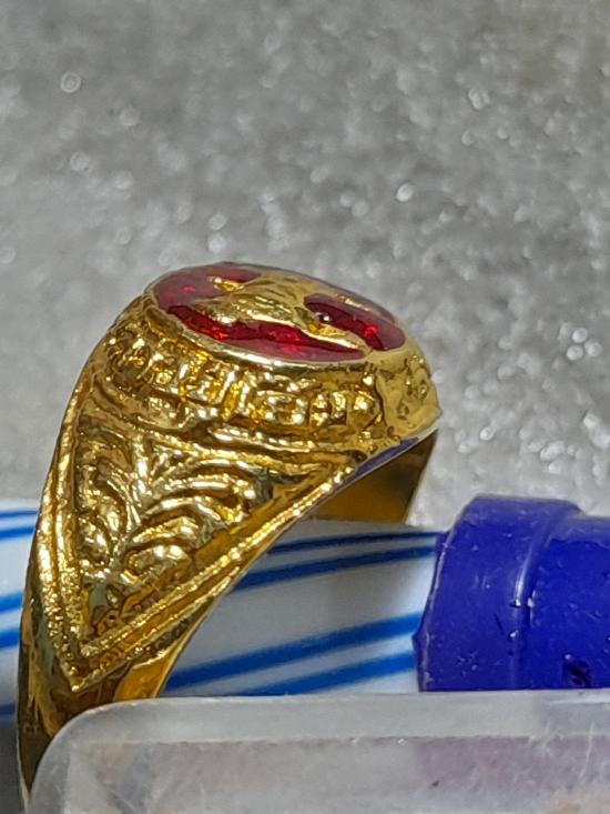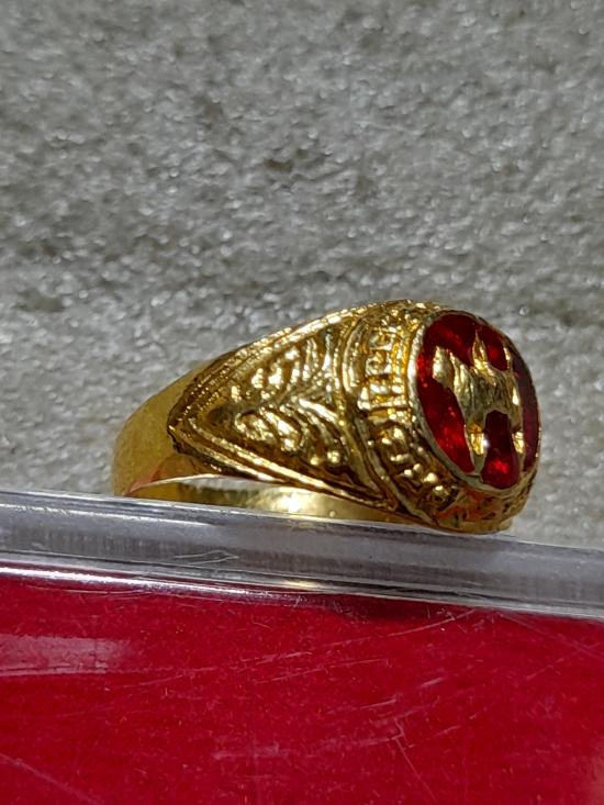 วัดใจเคาะเดียว.............แหวนผู้หญิง กะไหล่ทองลงยาสีแดง หลวงปู่เย็น ทานรโต วัดการเปรียญ วัดสระเปรียญ สวยๆ หายาก |